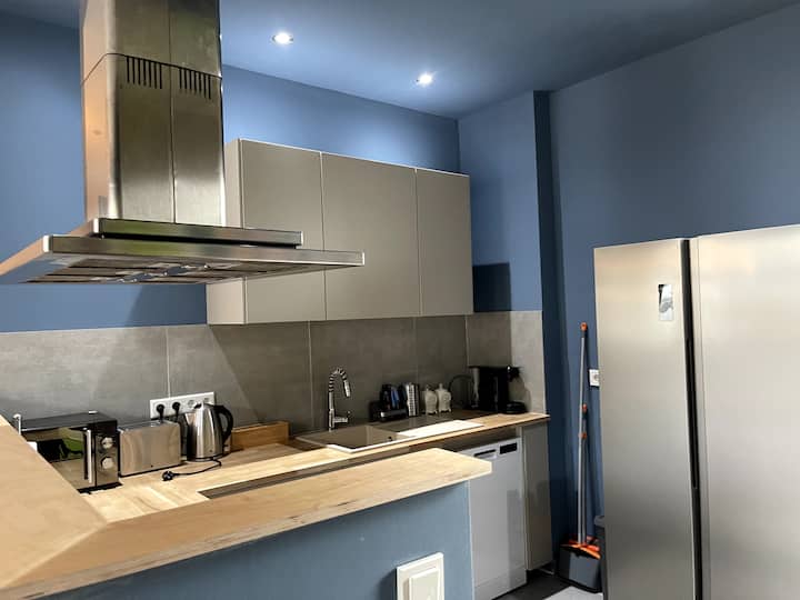 Central avec terrasse, 4 chambres et un barbecue.