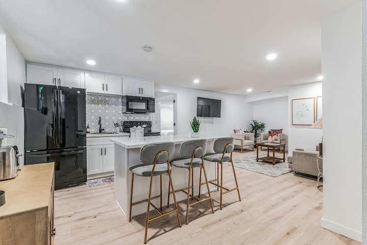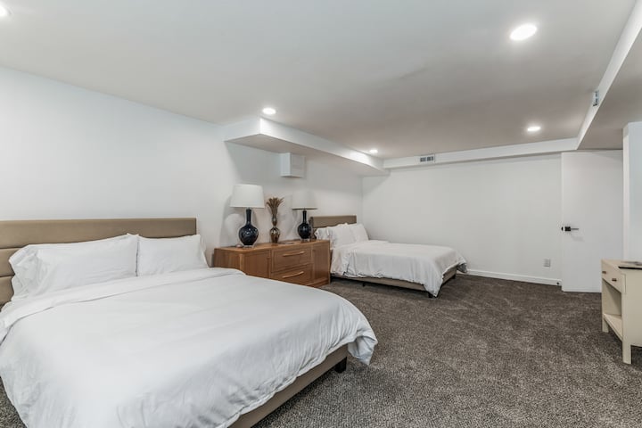 Cette spacieuse unité au sous-sol de 1 080 pieds carrés est située dans un quartier paisible, offrant un accès privé et aucun espace partagé. Profitez d'une grande terrasse extérieure pour une détente ultime, ainsi que d'une cour arrière privée. Entièrement équipé avec toutes les commodités de base, il est idéalement situé à proximité du centre-ville de Seattle, de la plage et de l'aéroport - parfait pour les familles et les groupes à la recherche de confort et de tranquillité.