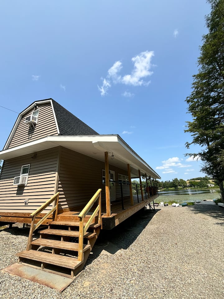 Bienvenue dans votre chalet personnalisé de deux étages sur Butler Lake à Susquehanna, PA—une retraite accueillante conçue pour le confort et la détente. Le pont supérieur ouvert est idéal pour bronzer pendant les mois les plus chauds, observer les étoiles par temps clair ou simplement profiter d'une vue paisible sur le lac. La terrasse couverte inférieure dispose d'un barbecue au propane et d'un coin repas extérieur, idéal pour les repas au bord du lac par tous les temps.