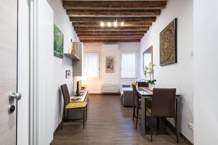 Magnifique appartement situé au cœur du quartier de Cannaregio. Localisation stratégique : à 10 minutes à pied de la gare routière et du terminus de bus, et à quelques pas de l'arrêt du Vaporetto. Un supermarché se trouve au coin de la rue, ainsi que beaucoup de bars, de cafés et de restaurants.