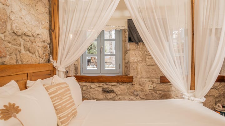 Chambre en pierre avec grand jacuzzi dans le village d'Alaçatı