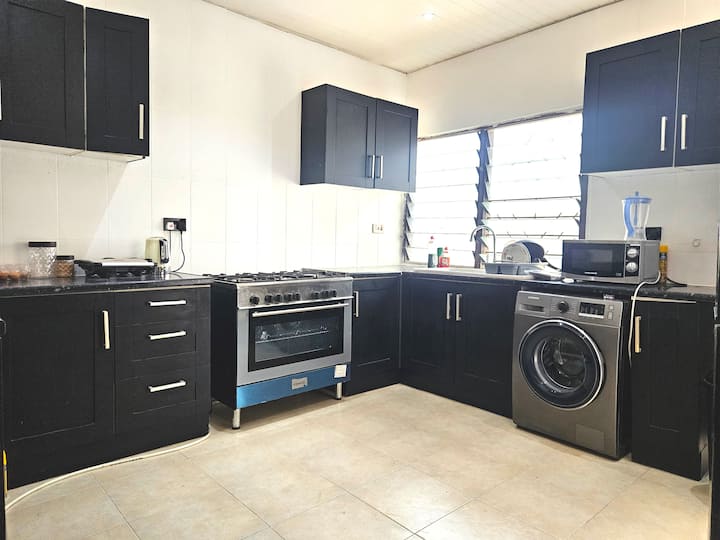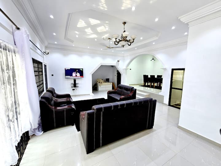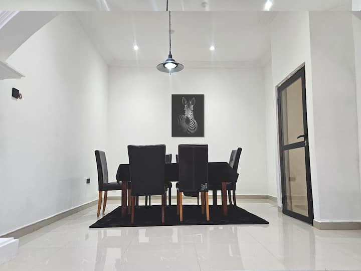 Découvrez le meilleur d'Accra dans ce logement de 3 chambres magnifiquement conçu, parfait pour les familles, les groupes ou les voyageurs d'affaires à la recherche de confort, de style et de commodité. Notre oasis spacieuse allie un design contemporain à tous les équipements dont vous avez besoin pour vous sentir comme chez vous.