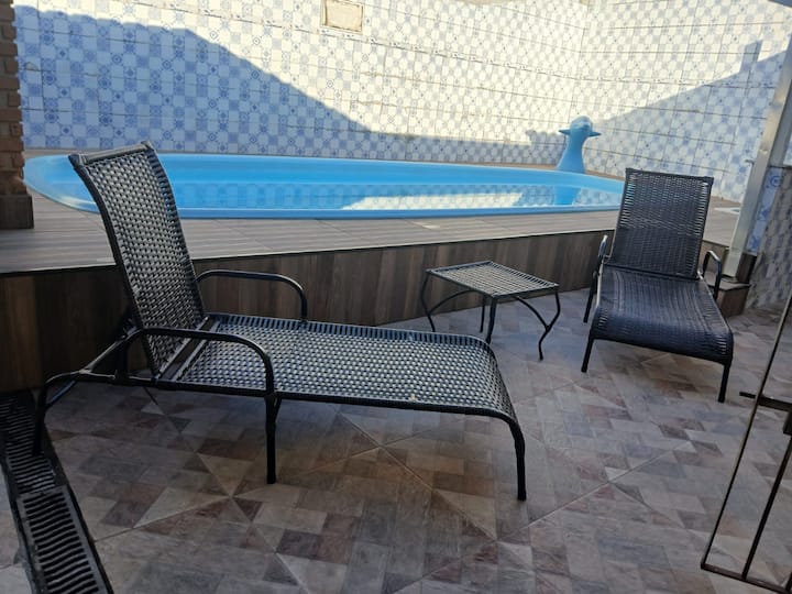 C'est l'un des rares logements de la région avec une piscine.