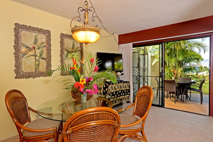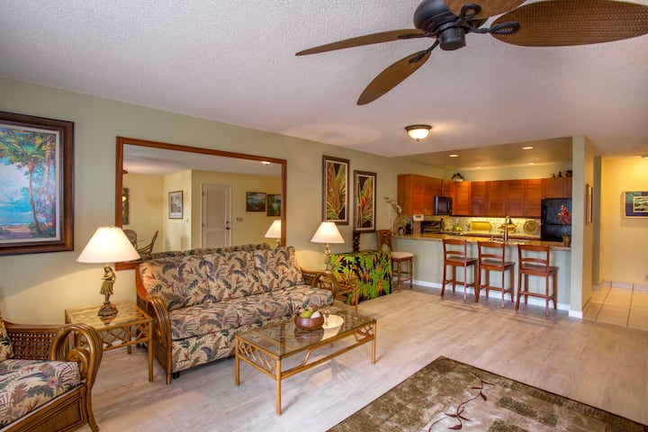Parce que Maui Kamaole a son propre puits artésien, les terrains sont luxuriants, tropicaux et immaculés. Nous adorons le calme du matin. Au moment où la journée commence à se réchauffer dans l'après-midi, les brises tropicales commencent à souffler pour nous rafraîchir. Nous laissons les fenêtres ouvertes la plupart du temps et utilisons rarement la climatisation. L'extrémité sud de Kihei est paisible et calme, mais à distance de marche des commerces et des restaurants. Nous avons vraiment l'impression que c'est le paradis.