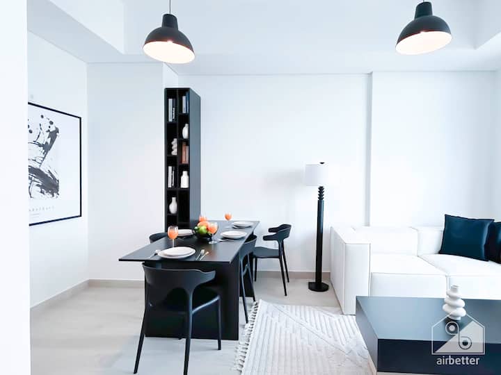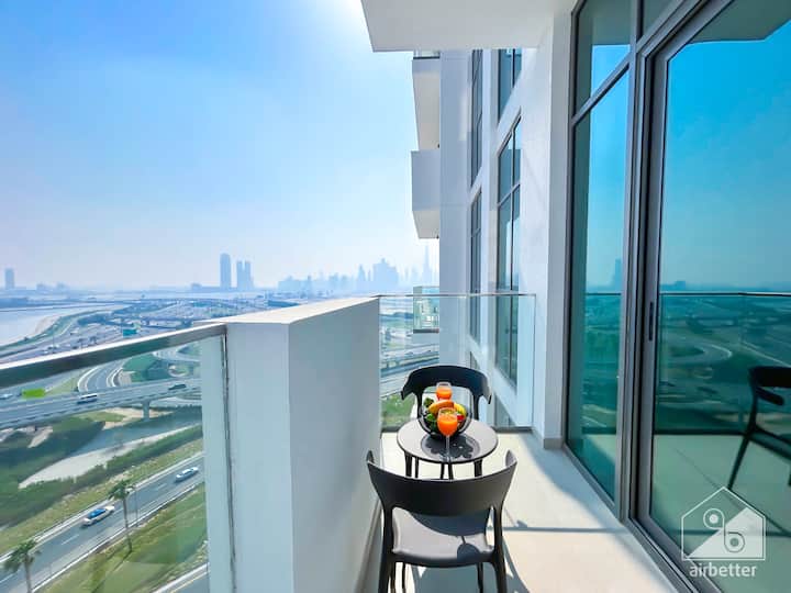 Élégant 1BR avec balcon et vue à Azizi Fawad