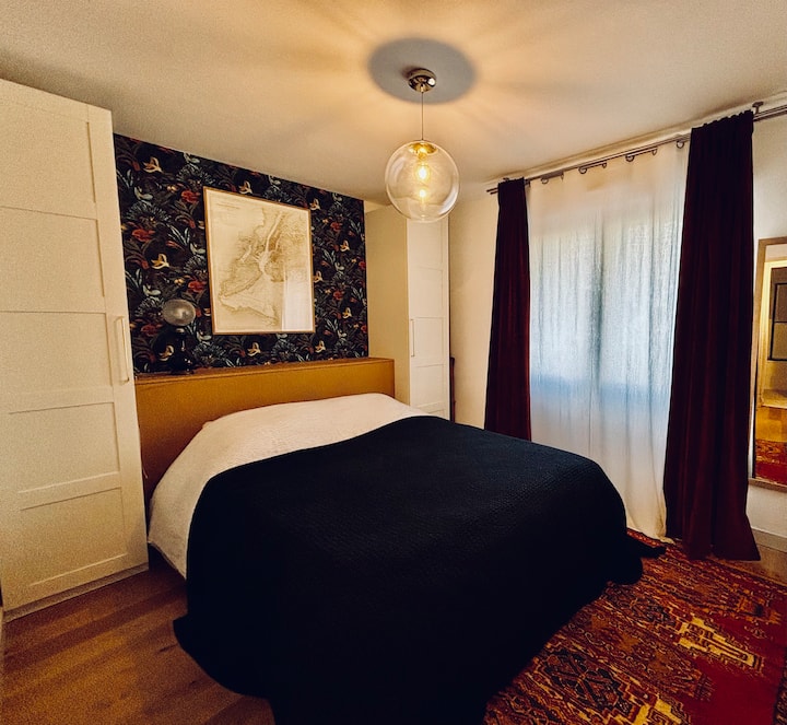 Cet appartement est le reflet de nos passions : Chiner, décorer et cuisiner. tout est mis en œuvre pour votre confort. vous serez choyez. Nous aimons être reçus avec attention alors recevoir avec beaucoup d’attention me semble essentiel.