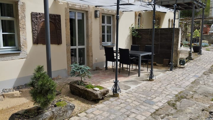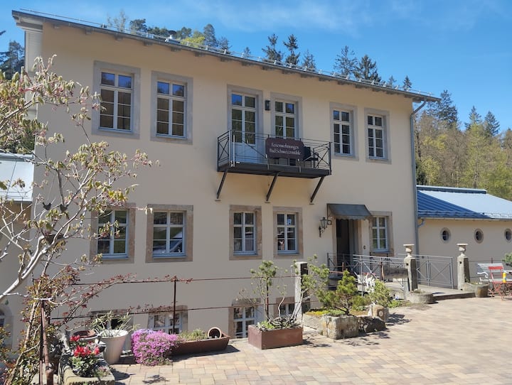 Vivez des journées de détente dans notre charmant appartement de vacances Rosengarten, dans le bain historique rénové avec amour, qui se trouve dans la région de randonnée et d'escalade populaire de Rosenthal-Bielatal.