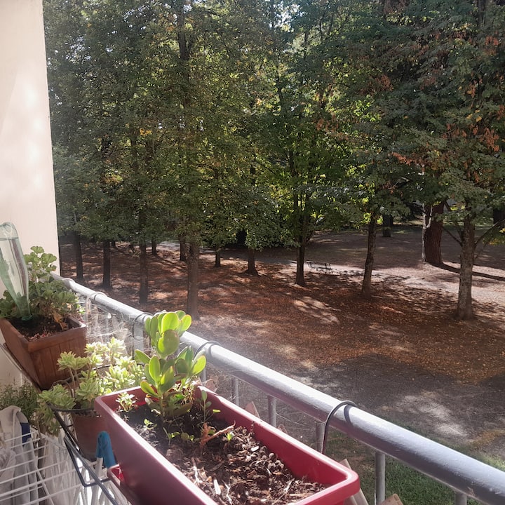 Mon appartement est très clair et lumineux avec vue sur le jardin collectif.