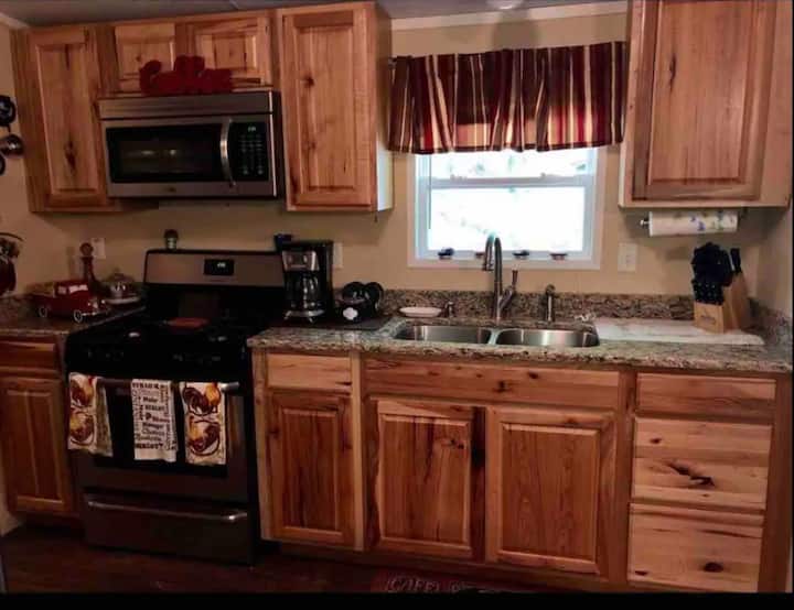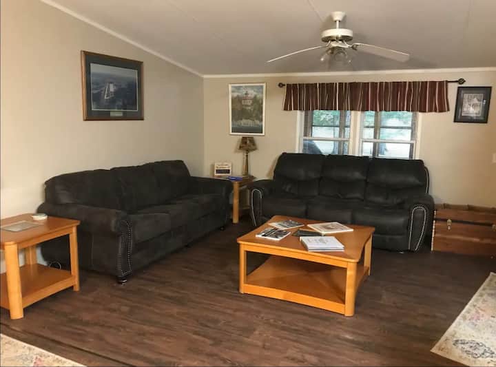 Il s'agit d'une maison de plain-pied de 1 200 pieds carrés avec 3 marches menant aux portes avant et arrière. Plan d'étage ouvert. La chambre principale dispose d'un lit Queen Size avec salle de bain attenante. La 2e chambre dispose d'un lit Queen. La 3e chambre dispose de 2 lits jumeaux. Le salon dispose d'un canapé convertible pleine grandeur. Les deux salles ont des douches debout. Le barbecue au charbon de bois est sur place. S'il vous plaît apporter votre propre charbon de bois. Pour les amateurs de pêche/navigation de plaisance, la rampe de mise à l'eau du Pérou/le quai Wilcox et les lancements de bateaux Naked Turtle à Plattsburgh sont à environ 10/15 minutes en voiture. Beaucoup de places de stationnement pour 2 bateaux/remorques maximum dans la propriété.
