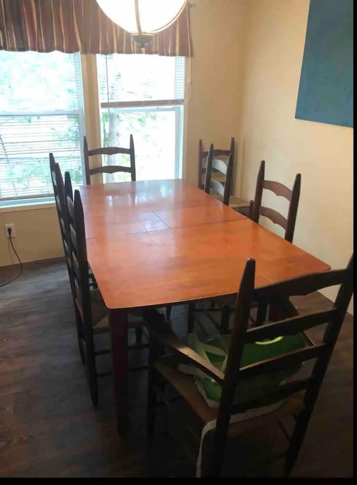 Si vous avez des enfants en bas âge, les articles suivants sont disponibles pendant que vous êtes ici : faites vos valises et jouez avec un drap ; siège d'appoint pour la table ; lit bébé pliant de taille enfant dans le placard avec le lit queen size. La maison n'est pas « à l'épreuve des bébés » en ce qui concerne les bords tranchants, les prises électriques, etc. Les assiettes/tasses pour enfants sont dans les placards et les ustensiles sont dans le tiroir à argenterie.