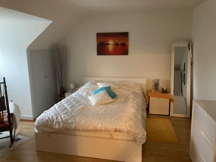 Une chambre privée dans un logement, incluant l'accès aux espaces partagés.