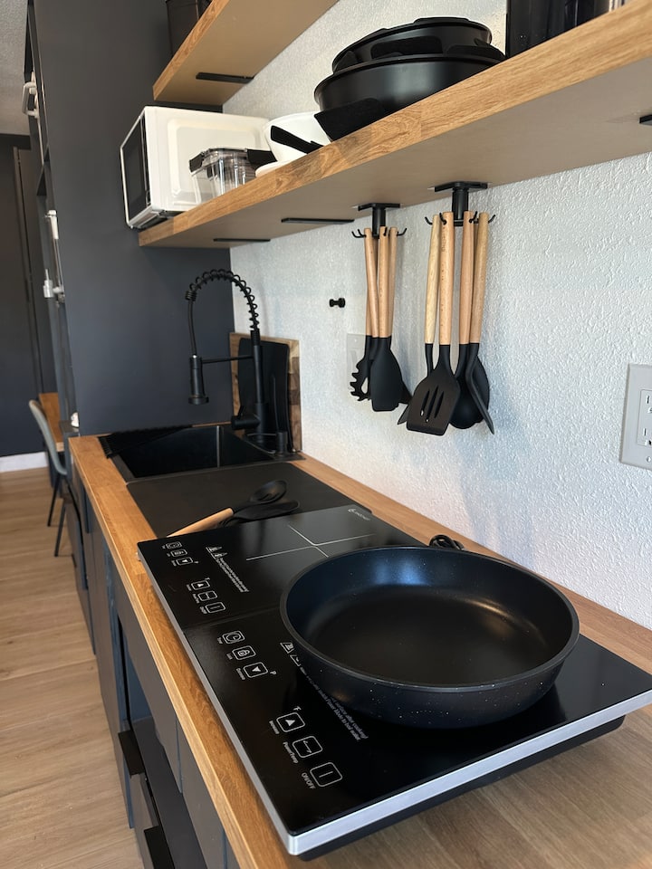 Studio confortable : prêt pour le travail et la cuisine