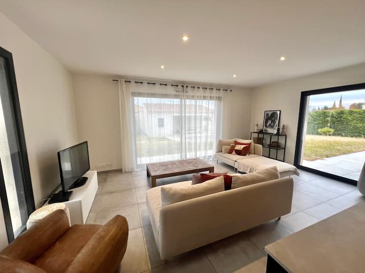 Vivez une expérience authentique dans une maison moderne située au cœur du charmant village viticole de Beaumes-de-Venise.Parfaite pour les familles, couples ou amis, cette maison dispose de tous les équipements nécessaires pour un séjour inoubliable entre vignobles et paysages pittoresques. Idéal pour les amateurs de randonnée et de vélo, à proximité du Mont Ventoux.Après une randonnée dans les dentelles de Montmirail détendez-vous dans la piscine en admirant la chapelle romane Saint-Hilaire.