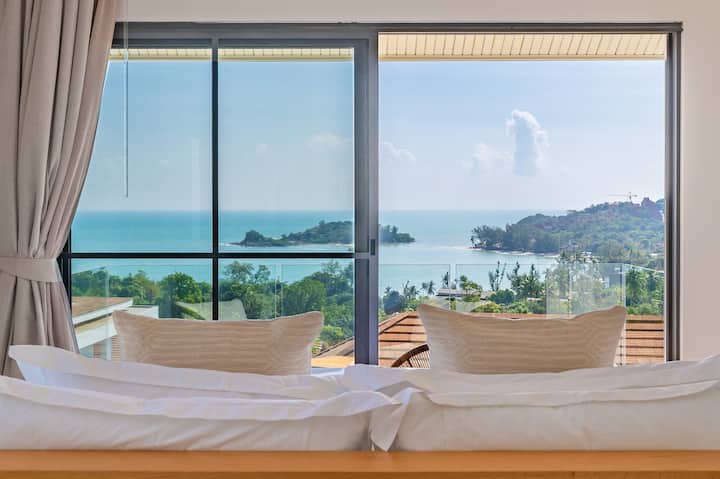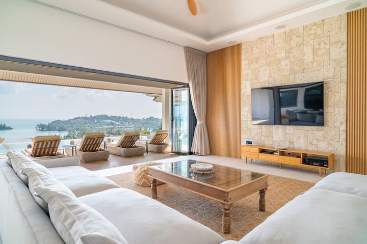 Villa Chanda moderne de luxe avec vue sur la mer et piscine à débordement
