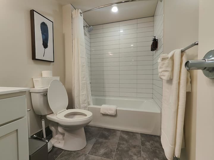 Notre appartement contemporain avec un design urbain est entièrement meublé, ce qui fait que nos clients se sentent comme chez eux, et surtout en sécurité ! Parfait pour les voyageurs d'affaires, les professionnels de la santé, une famille visitant la ville ou les amateurs de sport visitant le métro et les environs.