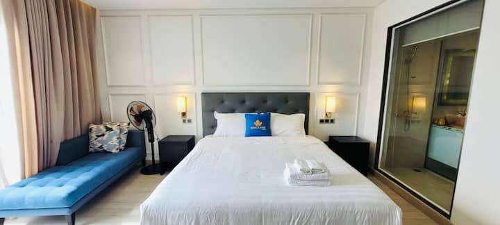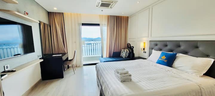 Situé au 22e étage du luxueux Wyndham Danang Golden Bay, ce studio au design élégant offre une expérience de vie exceptionnelle. Avec une vue imprenable sur la baie, la plus belle de l'hôtel : l'air frais de la côte, un point de vue surélevé et une ambiance sereine qui invite à la détente. Surtout depuis le balcon, profitez de feux d'artifice fascinants sur la rivière Han, créant des moments inoubliables juste devant votre porte.