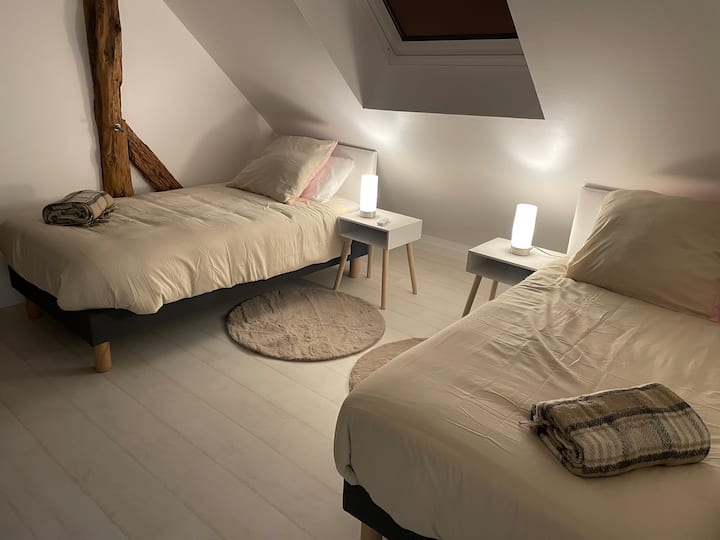 - Chambre 4 : 2 lits 1 personne 90x200 cm