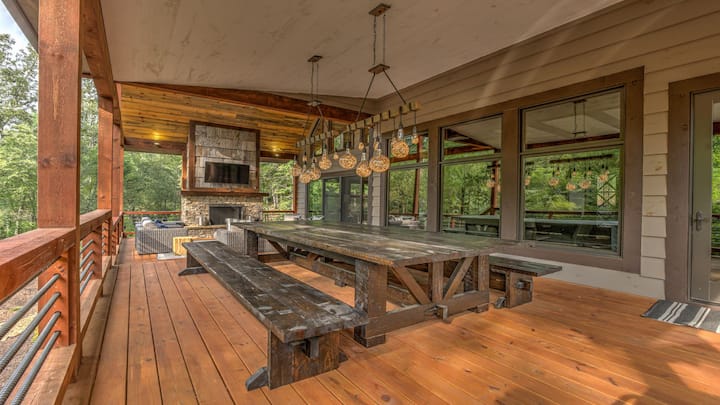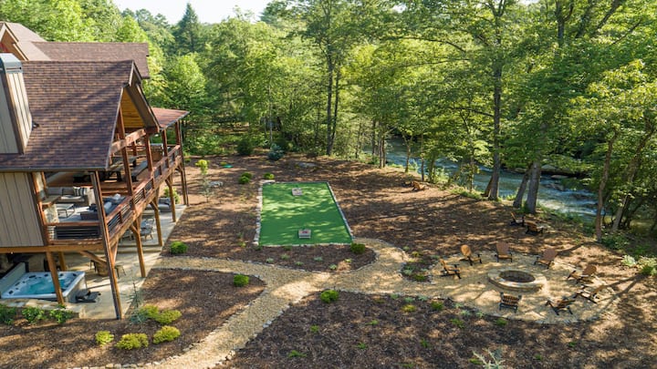 Juste à côté de ce niveau, il y a l'événement principal! Vous trouverez le spa, des sièges extérieurs spacieux sur le patio en pierre artisanale donnant sur l'incroyable cadre du ruisseau. Le paysage et les commodités conçus et clôturés par des professionnels font de cette partie du ruisseau un paradis! Un grand vert d'exercice sert aussi d'espace pour le jeu de poches, et un grand foyer avec des sièges crée l'endroit idéal pour les soirées à l'extérieur en profitant du ruisseau sur ces magnifiques terrains. Whispering Water Lodge est un paradis sous de nombreuses formes, mais n'oubliez pas les eaux cristallines à quelques pas du chalet! Fightingtown Creek est réputé pour être une destination de pêche toute l'année et est l'un des cours d'eau les plus importants qui abrite à la fois des truites ensemencées et indigènes. Vous n'êtes pas un pêcheur? Cette partie du ruisseau est l'une des plus recherchées pour son cadre, idéale pour les pique-niques ou le café du matin dans l'une des chaises Adirondack. L'eau a de nombreux endroits pour patauger et profiter des pierres naturelles et de l'eau fraîche pendant les saisons chaudes dans les montagnes.