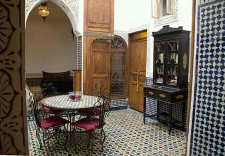Notre riad est proche des portes bleues (boujloud bad), bouananiya medirsa ainsi que des marchés locaux. Nous avons une cuisine commune ainsi que 3 chambres privées avec salle de bain privée. Nous avons aussi un salon commun et une belle terrasse. Et nous organisons des voyages et des excursions vers différentes destinations au Maroc (Sahara, désert, chafchaouen, atlas montagne, gorges, Marrakech, essaouira ....) ~~