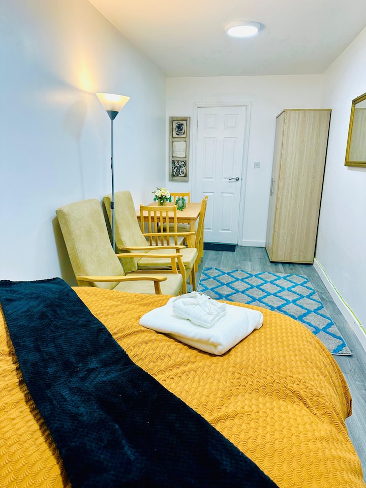 Une chambre privée dans un logement, incluant l'accès aux espaces partagés.