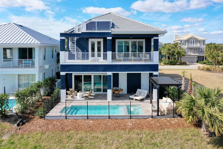 Faites passer votre retraite côtière au niveau supérieur lorsque vous réservez cette toute nouvelle maison de 4 lits / 4,5 salles de bain qui peut accueillir confortablement 10 personnes et offre 3 400 pieds carrés d'espace de vie magnifiquement détaillé et élégamment meublé. À seulement 5 minutes à pied de la plage, cette luxueuse propriété au bord de l'eau dispose de 2 espaces de vie, d'une salle de jeux, d'un grand balcon, d'un balcon sur le toit, d'une piscine privée, d'un jacuzzi, d'une cheminée à gaz extérieure et de deux suites principales… donnant à votre groupe plus qu'assez d'espace pour en profiter !