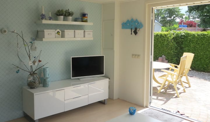 Maison de vacances légère et confortable, avec jardin clos. Juin 2016 joliment décoré. Proche de la mer des Wadden, des merveilleuses villes et eaux frisonnes. Park De Friese Wadden à Tzummarum. Piscine, aire de jeux, terrains de sport. Culture, shopping, randonnée, vélo, navigation de plaisance. Avec la maison adjacente n ° 47 max. 10 personnes.