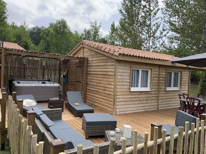 Le chalet est équipé d'une pièce à vivre avec 1 banquette lit (2 personnes) 1 TV, 1 mini-chaîne, d'un coin cuisine (vaisselle, cafetière électrique, grille-pain, bouilloire, micro-ondes, plaque vitrocéramique 2 feux, frigo avec congélateur, lave vaisselle) 1 table + 6 chaises.