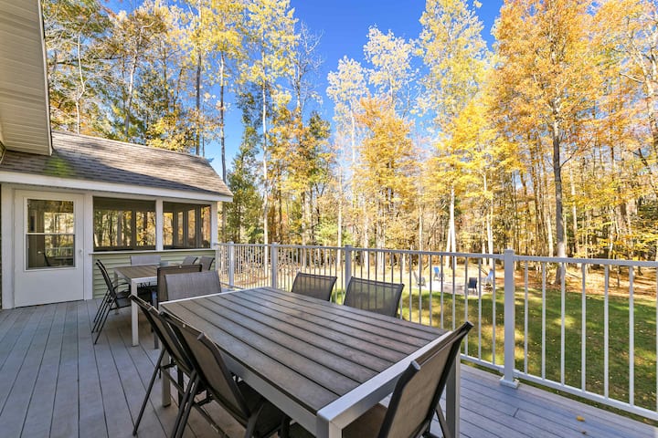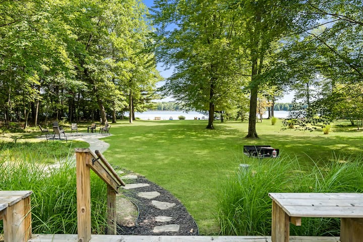 Le superbe Upper Scott Lake Retreat de 2 325 pieds carrés, 6 chambres/3 salles de bain, bénéficie de 100 pieds de bord de lac, avec un quai privé de 50 pieds où vous pouvez pêcher ou amarrer votre bateau directement sur le lac Upper Scott. Profitez des soirées au coin du feu, observez les étoiles ou détendez-vous sur les meubles d'extérieur sur la terrasse ou au bord du lac en regardant les cygnes nager. Cette maison dispose également d'une salle de jeux avec une table de billard et un baby-foot pour les compétiteurs de votre groupe, ainsi que d'une télévision HD TV de 55 po parfaite pour les soirées cinéma.