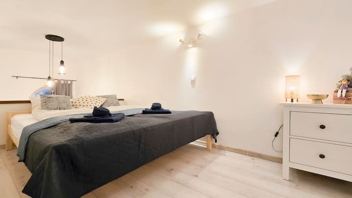 L'appartement dispose d'un salon confortable, d'une table à manger, d'une cuisine entièrement équipée et d'une salle de douche pour votre confort. Le loft offre un espace séparé, tandis que l'appartement fournit toutes les commodités nécessaires pour un séjour agréable. La climatisation assure le confort par temps chaud, tandis que la cour intérieure offre un environnement paisible pour se ressourcer.