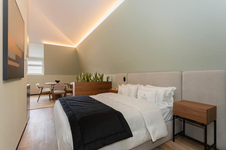 Imaginez la literie moelleuse sur un lit king size, et le confort doux d'un matelas de haute qualité. Les nuits sont calmes, paisibles et accueillantes, juste le genre de retraite pour vous aider à vous détendre après une longue journée de respiration à Porto.