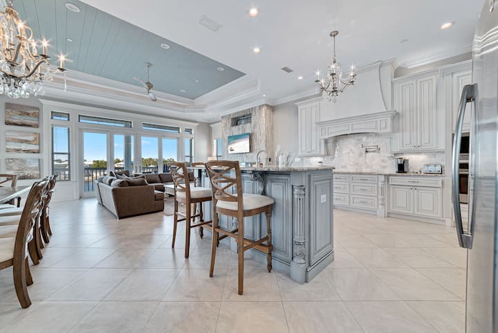 Plusieurs espaces de vie : deux vastes espaces de vie avec des sièges somptueux, des téléviseurs HD et une décoration chic côtière.