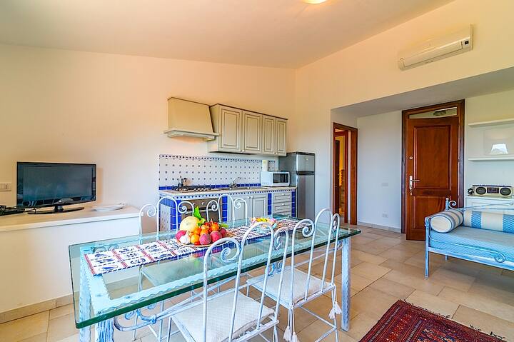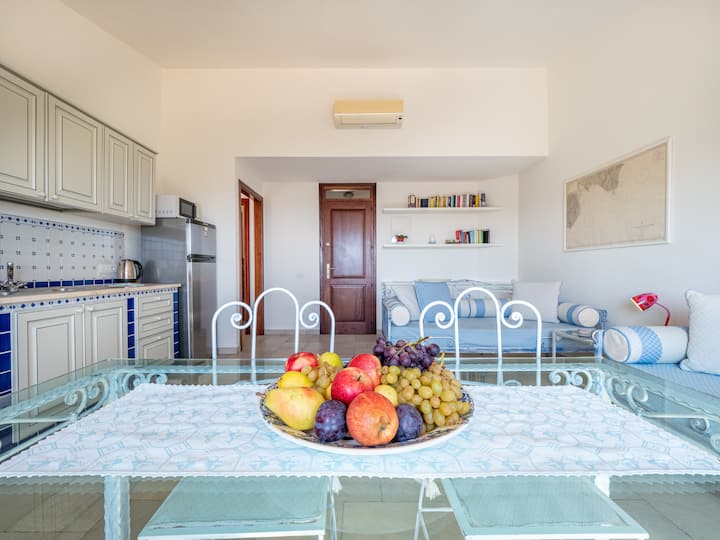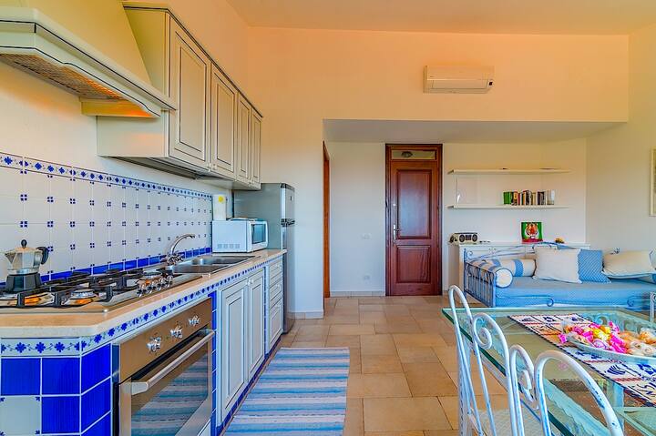 Tous les 3 appartements où j'accueille des voyageurs à Villasimius, ont été pensés par moi et mon fils, en termes de matériaux, d'ameublement et de couleurs.