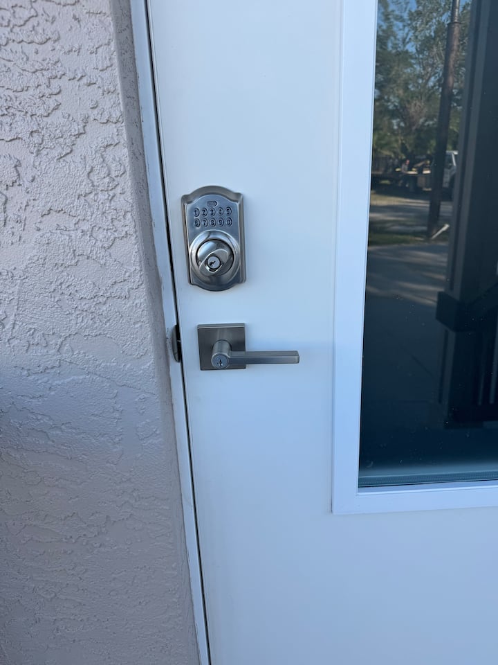 Vous pouvez entrer dans les lieux à l'aide d'une serrure à digicode.