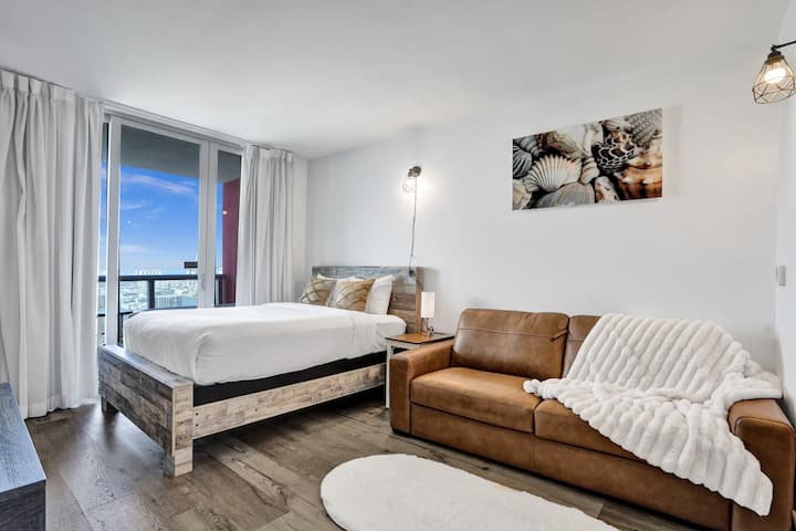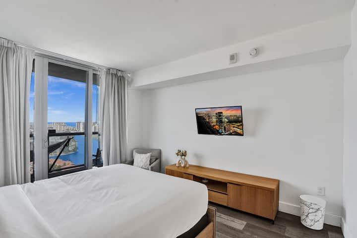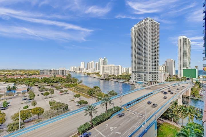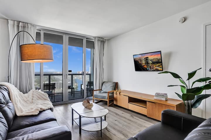 Détendez-vous dans notre appartement accueillant de 2 chambres, conçu pour la détente et le confort ultimes. Profitez d'équipements de style complexe hôtelier, y compris une piscine étincelante, une salle de sport ultramoderne et un bistrot confortable sur place. Commencez votre journée à la plage sans effort avec une navette gratuite vers Hallandale Beach, où deux chaises de plage vous attendent. Pour ceux qui souhaitent explorer, des locations de vélos sont disponibles pour découvrir la région animée à votre rythme. Au Beachwalk Resort, votre séjour est bien plus qu'un simple lieu de repos. C'est une porte d'entrée pour découvrir le meilleur du sud de la Floride.