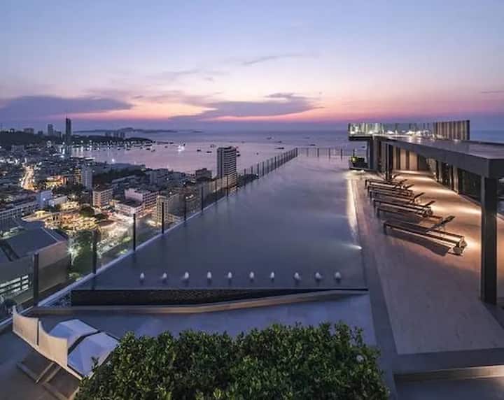 L'appartement de base Pattaya avec vue sur la mer et piscine à 3 minutes à pied du centre-ville de la plage avec WiFi haut débit