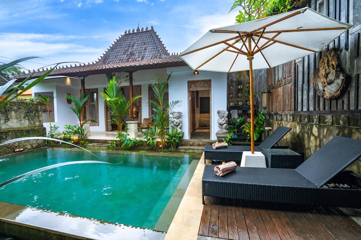 vue sur la piscine privée confortable et cachée de 2 chambres à Ubud