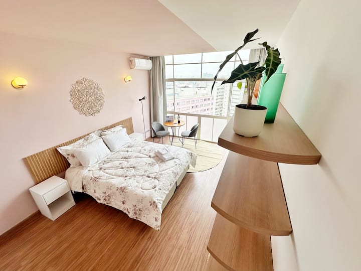 Séjournez dans l'emblématique Copan Building et profitez d'une vue incroyable sur São Paulo ! Notre appartement offre confort et praticité, avec climatisation, kitchenette équipée et une décoration confortable. Idéal pour les voyages d'affaires ou de loisirs, vous serez au cœur de la ville, entouré de restaurants, cafés et attractions culturelles. Profitez de cette expérience unique dans l'un des bâtiments les plus célèbres du Brésil !