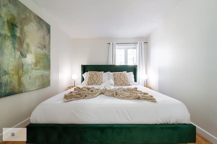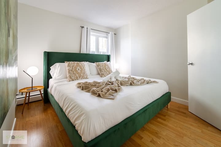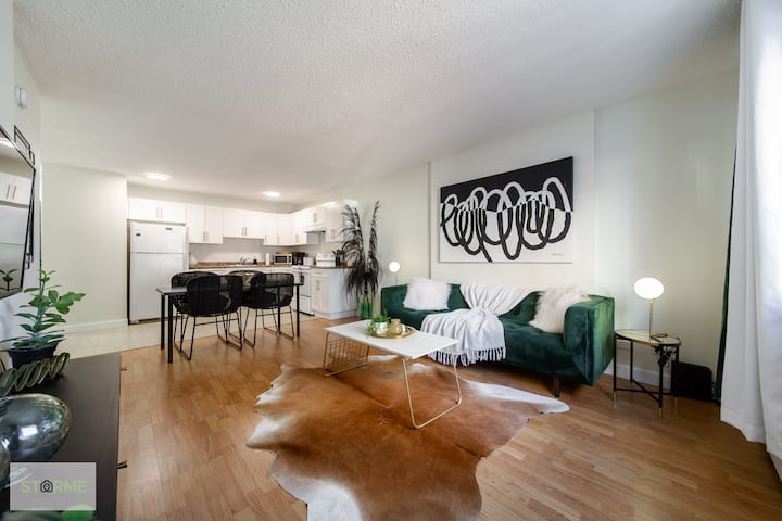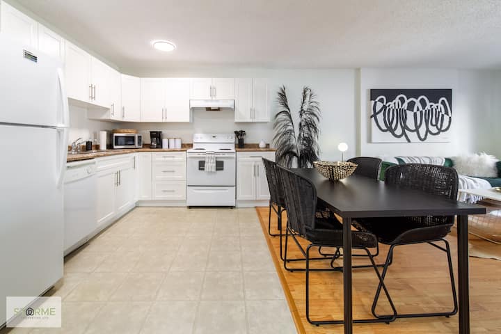 Vous disposez d'un accès total au condo lors de votre visite. Séjournez et faites des câlins sur le canapé et profitez gratuitement de Disney+ ou explorez Edmontons River Valley à votre porte ! Ou montez dans un Uber jusqu'à l'arène Rogers pour assister à un match ou à un concert. Situé dans le quartier des glaces d'Edmontons avec de nombreux restaurants uniques et locaux !