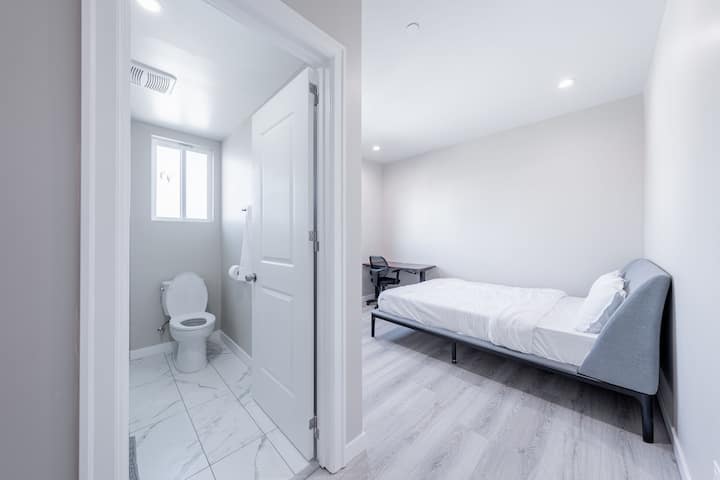 Une chambre privée dans un logement, incluant l'accès aux espaces partagés.