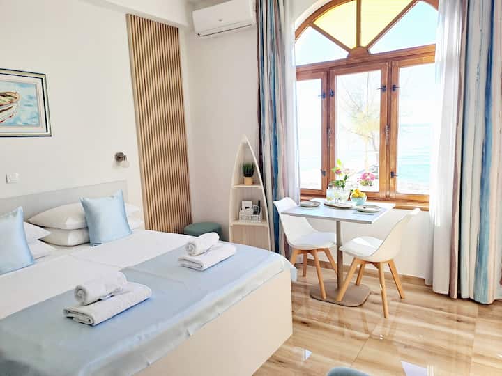 Nous proposons plusieurs appartements en bord de mer, tous avec vue sur la mer et équipement de plage partagé à la disposition de nos voyageurs. Notre objectif est simple : un séjour détendu et confortable en bord de mer, avec un accueil attentionné et le respect de l'intimité.