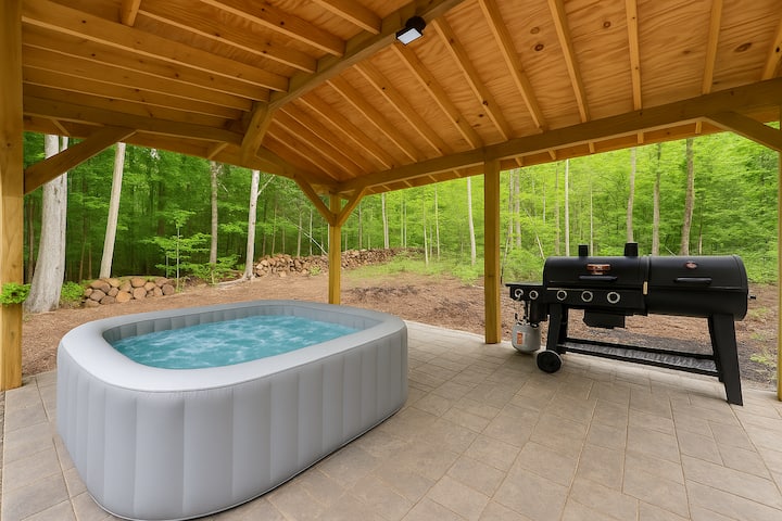 - Tonnelle personnalisée avec jacuzzi gonflable et barbecue bicarburant au charbon de bois/gaz