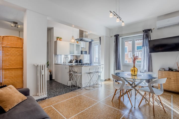 Suite lumineuse au cœur de Rome à 4 arrêts du Colisée située au 9èmeétage d'un immeuble prestigieux avec ascenseur :