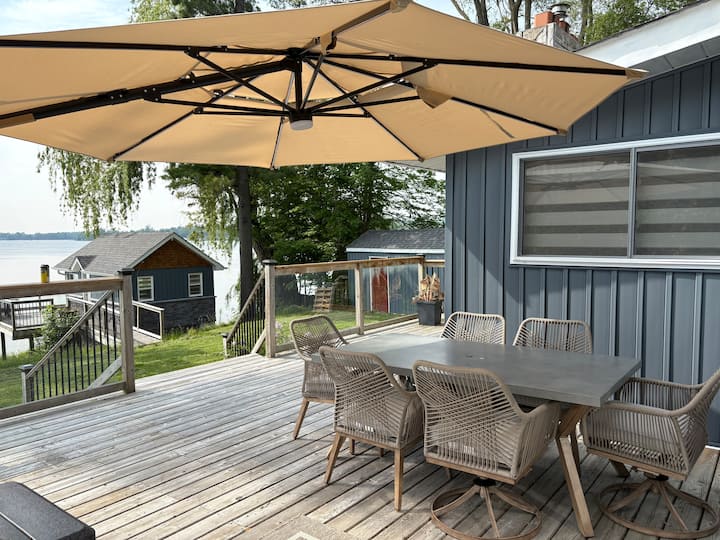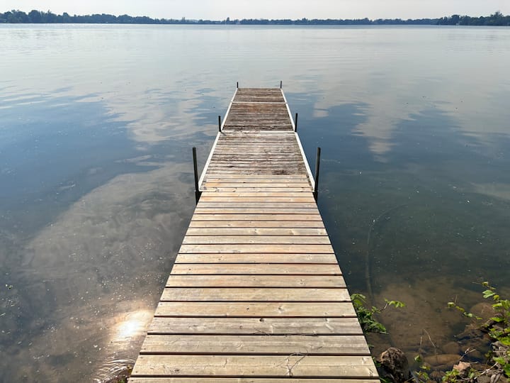 Chalet spacieux au bord de l'eau toutes saisons/bunkie/quai