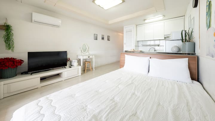 En dehors de la fenêtre, c'est une pension de chien de mer devant la cour taéenne où vous pouvez laver la fatigue de la vie quotidienne au son de la grande mer et des vagues fraîches.