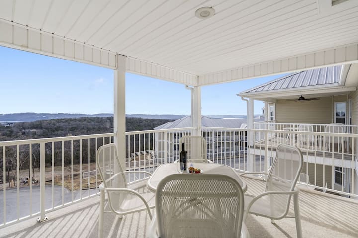 Emmenez vos amis, votre famille ou votre conjoint et partez à l'aventure à Ozarks Vista 134! Détendez-vous près du foyer chaleureux dans le salon ou préparez de délicieux repas dans la cuisine entièrement équipée. La terrasse offre une vue paisible sur les Ozarks qui vous invitent à profiter de votre café du matin ou de l'observation des étoiles en soirée. Avec l'accès du complexe au lac Table Rock, vous pouvez passer vos journées sur l'eau ou simplement vous imprégner de l'air frais des Ozarks!