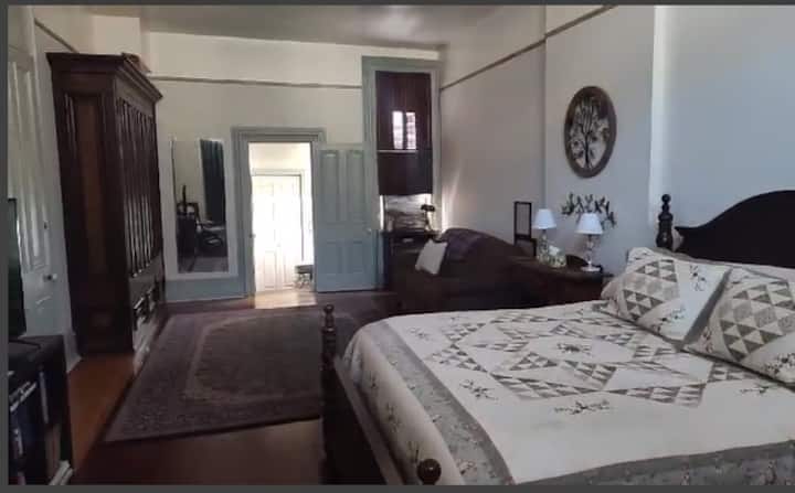 Évadez-vous dans cette chambre privée de style rustique au deuxième étage d'une maison paisible à Shamokin, en Pennsylvanie. Peut accueillir jusqu'à 4 personnes avec un très grand lit et un canapé-lit. Comprend une salle de bain privée, une télévision Roku, une connexion Wi-Fi rapide, la climatisation et le chauffage.