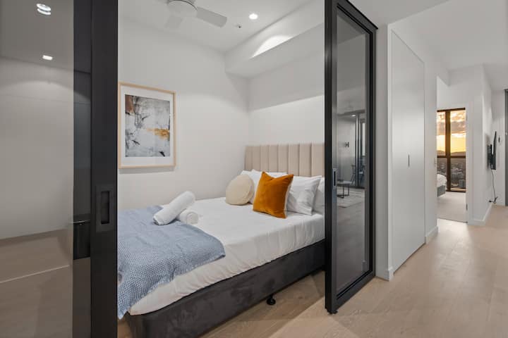 Réveillez-vous avec une vue imprenable sur la rivière et la douce lumière matinale remplissant votre élégante retraite de grande hauteur dans le nouveau monument emblématique de Brisbane ,-Queen 's Wharf. Commencez votre journée avec un café fraîchement préparé, en admirant l'ambiance paisible de votre espace élégant et bien conçu. Niché au cœur de ce complexe hôtelier intégré de classe mondiale, vous n'êtes qu'à quelques minutes de la gastronomie, du shopping de luxe et de la vie nocturne animée. À la tombée de la nuit, détendez-vous avec un verre de vin et admirez le spectaculaire
