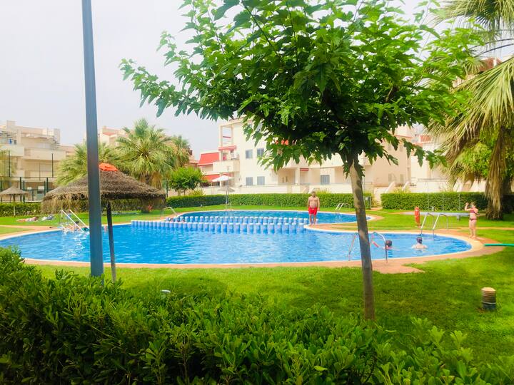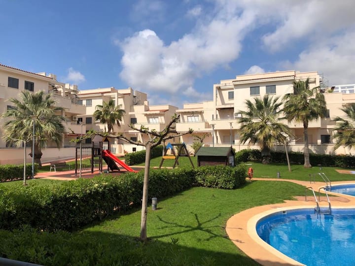 Le complexe « Las Arenas » est composé de deux grandes piscines à la fois avec aire de jeux pour enfants et sauveteur en juillet et août, deux courts de padel en parfait état de verre et de sol en herbe, deux zones de loisirs pour enfants avec balançoire , toboggan, etc., font que les enfants profitent d'un environnement idéal pour profiter des vacances.