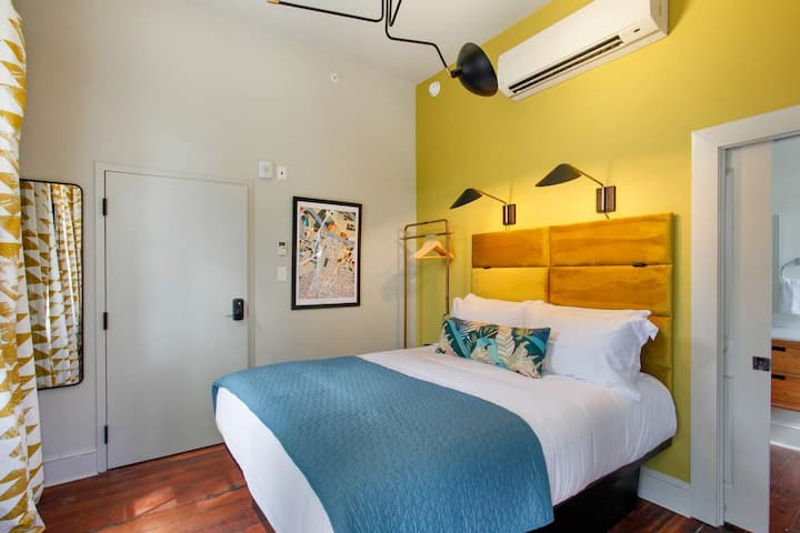 Suite ensoleillée avec grand lit au centre-ville, 2e étage