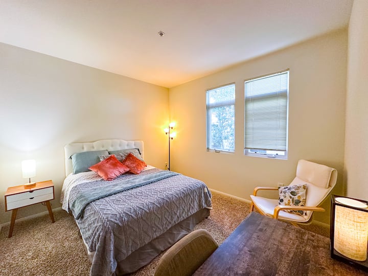 Une chambre privée dans un logement, incluant l'accès aux espaces partagés.